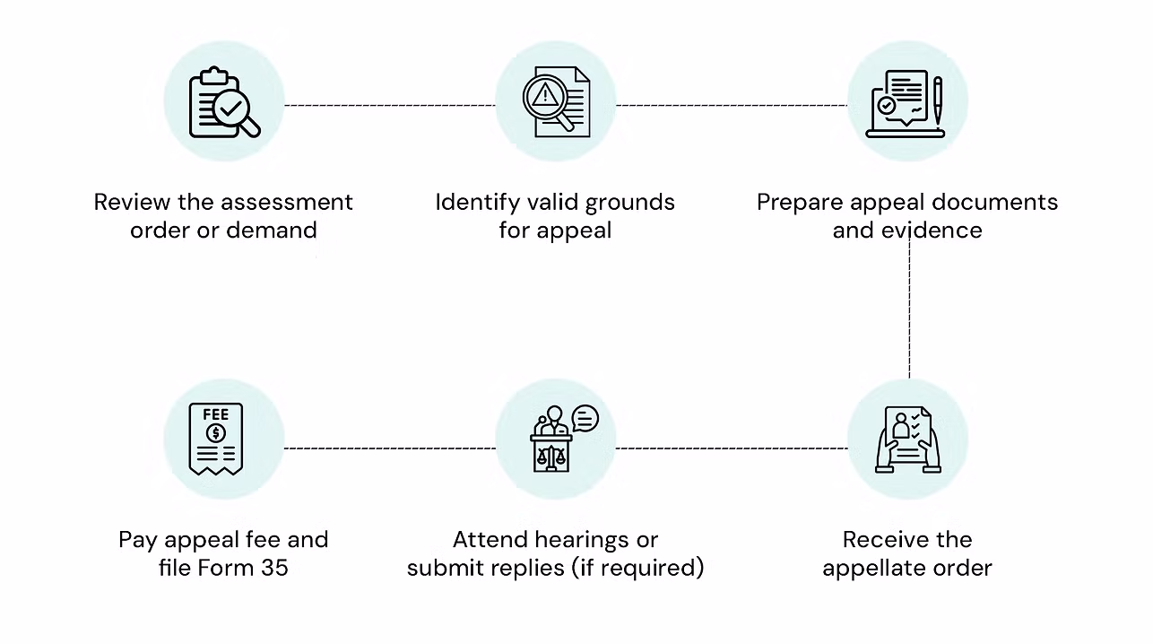 A simplified overview of the appeal journey—from notice review to final submission and follow-up.